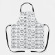 A modern design for a white all-over-print-apron with a stylish pattern of name and initial letters in black font styles... to protect your clothes while cooking in your kitchen