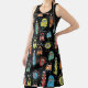 Cute Aliens monstruos sin costura patrón Vintage negro. Niños divertidos repitiendo el fondo con personajes graciosos para el diseño de tela, papel pintado, envoltura, ropa para niños. Alienígenas juguetones: monstruos adorables añaden carácter a la decoración. Cosmic Cuties: Aliens and Monsters Make a Fun Kids-Wear Statement. fondo, patrón, ilustracion, decoración, bebé, moda, halloween, personalizado, niño, animal, feliz, negro, sin costuras, cara, personaje, niño, lindo, doodle, tejido, dibujo
