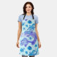 Hermosa, rara, púrpura y turquesa creatura oceánica, esta Sirenita es nadadora y parece jugar, rodeada de Starfishes, conchas de mar, algas, peces y sosteniendo un pequeño caballito de mar en su mano; todos los elementos están ensamblados para componer un patrón sin fisuras. Ilustracion vectorial Copyright BluedarkArt.