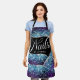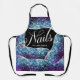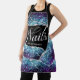 El moderno delantal de moda para técnico de uñas presenta Relieve metalizado falso plateado y guión de purpurina y tipografía Nails sobre fondo negro. Personalice más con un nombre.