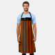 Este delantal de impresión completa presenta un naranja de Halloween rayado y un patrón negro con una sección negra sólida en la parte superior para su nombre personalizado.