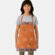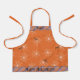Entrar en el encantador mundo de Halloween con nuestros cautivadores niños naranjas Spooky Spiders apron. Patrón dibujado a mano de arañas y telarañas. Hermoso patrón de manchas de Halloween en los bordes superior e inferior. La parte inferior dice "Feliz Halloween". ¡Personaliza con un nombre!
