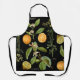Un bonito delantal de inspiración vintage con ilustraciones botánicos vintage de flores naranjas, naranjas y limones cortados en un fondo negro. Personalizar tu delantal con tu elección de color de acento en las correas y correas de cintura. El accesorio perfecto para tu cocinera favorita, cocinero de barbacoa, apasionado del oficio, artista o jardinero. Viene en una selección de tamaños. Durable, útil y encantador. Hace un regalo atento.