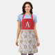 Este adorable delantal cuenta con un fondo de pinstriped azul con pan de jengibre, galletas de chocolate, galletas de azúcares estrella y caramelos de menta. La parte superior tiene un patrón de puntos polka rojo y blanco. Personaliza con una inicial.