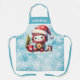 Es un gracioso delantal personalizado de Navidades con un lindo robot sosteniendo una galleta, usando un sombrero rojo de Santa, sentado cerca de una taza de cacao caliente y un árbol de Navidad. Este diseño está decorado en tonos azules y rojos nevados para las fiestas durante la temporada de vacaciones.