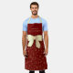 Este hermoso delantal de oro claro y rojo oscuro traerá alegría a tu cocina. En la parte inferior, un hermoso patrón de pinos minimalistas claros, encima del texto: Navidades de la brigada de cocina en letra tipográfica dorada. En el centro, un hermoso arco para dar un toque de elegancia. ¡Perfecto para un Navidad muy feliz y delicioso!