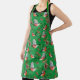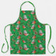 ¡El delantal festivo hace que los Navidades cocinen más divertido! El patrón se caracteriza por aves de bullfinch rojas con conos de pino y ramas perennes sobre fondo verde.