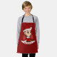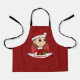 El delantal de los niños con el ilustracion de un lindo sonriente y feliz chica con el pelo castaño largo, el chica está usando un disfraz de Santa Cláusula con un gorra rojo y sosteniendo un regalo, en un círculo rojo; con una plantilla de texto de personalizable para el nombre o mensaje de su hijo