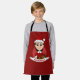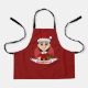 El delantal de los niños con el ilustracion de un lindo sonriente chica feliz con el pelo negro oscuro, el chica está usando un disfraz de Santa Cláusula con un gorra rojo y sosteniendo un regalo, en un círculo rojo; con una plantilla de texto de personalizable para el nombre o mensaje de su hijo