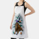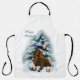 Maravilloso arte Navidad con un adorable Field Spaniel sentado frente a un árbol de bosques en el bosque.