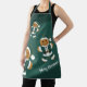 Un delantal con tres galletas de Santa sobre un fondo verde, sonrientes y de pan de jengibre, con las palabras personalizable "Feliz Navidad" en blanco. Este delantal está listo para vacaciones de diversión, o para traer la alegría de los Navidades a cualquier época del año. Navidades de pan de jengibre Santa Verde Apron Sweetsham Arte de comida | ©Melissa Patton - Artista/Ilustrador