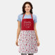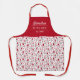 ¡Gnomes, gnomos, gnomos! Este divertido delantal presenta un patrón de gnomos, árboles y copos de nieve en rojo, blanco y gris sobre un fondo blanco. ¡Ideal para las vacaciones de los Navidades o sólo para un divertido delantal de invierno! Se incluyen tres plantillas de texto para la personalización, lo que hace de este delantal un verdadero regalo para el chef o panadero en su vida.