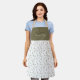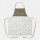 Apron Navidades de Paz Personalizada en la Tierra. Patrón sin foco de pineconas, ramas y velas. La parte superior incluye un elegante tipo de letra con el texto "Paz en la Tierra". La línea inferior se puede personalizar con su propio texto. Kimbelated, LLC