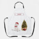 Esta raza de perro, un Westie está sentado al lado de un árbol de Navidad decorado. Esperando las vacaciones, este perro se ve humorístico con un sombrero de santa y corbata de arco rojo. Perfecto regalo para enviar a estos Navidades ya sea de o para un amante de los perros - ¡o sólo porque es gracioso!