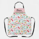 Navidades Mittens Candy Red Green Script Pattern Apron Navidades caramelos, mitones y copos de nieve en colores festivos festivos - rojo, verde, rosa, azul - sobre un fondo blanco. Personaliza con el nombre en la parte superior en escritura negra, con "Navidades haciendo Crew" debajo en una fuente divertida. Cambie fácilmente esta línea y los colores superiores si lo desea. ¡Tan alegre y divertido para las vacaciones!