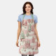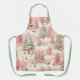 El hermoso patrón de Navidad vintage de acuarela es de tonos rosas y verdes. Cocina de Navidades rosados de moda / arte / delantal artesanal.