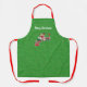 Este delantal de la cocina es verde oscuro con pequeñas motas de oro y un tren de Navidades con Santa Claus llevando latas de dulces y cartas a Santa Claus con ruedas de caramelo de menta. Personalizar el texto con la plantilla.