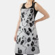 Delantal Negro sobre pájaros de patrón plateado y flores de