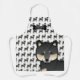 El original ilustracion personalizado de Destei de un lindo perro de raza Shiba Inu de color negro y canto. El diseño del perro se coloca como un patrón en el fondo del delantal así como un retrato de cabeza más grande en el fondo. La parte superior tiene una silueta de hueso de perro negro junto con un área de texto personalizable para un nombre.