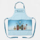 Este delantal de bonito tiene una escena invernal con dos casas, un árbol, un pajar y dos adorables hombres de nieve vestidos de calidez. Hay un corazón por encima y copos de nieve. La parte superior e inferior del delantal son copos de nieve blanco bonito sobre un fondo azul pálido y hay un lugar para poner tu nombre en la parte superior. Un delantal tan dulce, perfecto para entretenerse o simplemente cocinar o cocinar para la familia.