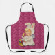 Niño vestido como conejo de pascua metálico en el aproro rosado - accesorio para damas de primavera en un diseño general - Resumen metálico en fondo rosado hornillo de cocina femenina - Peggy Ann Apron femenino de pascua