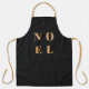 Sencillo, elegante y audaz "Noel" cita el delantal de las vacaciones de arte en oro elegante sobre un fondo negro de lujo en un estilo tipográfico minimalista moderno. El saludo se puede personalizar fácilmente para un diseño único y personal de vacaciones que destaca entre la multitud.