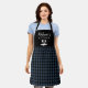 Personalice el delantal con una verificación transparente de búfalo azul marino y negro, Icono de herramientas de cocina junto con el nombre personalizado +Texto. Perfecto como regalo de cumpleaños o vacaciones.