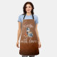 En el centro del delantal, encontrarás una cafetera de diseño intrincado, una taza de café, lista para empezar el día, y rollos de canela, recién horneados a la perfección. Para que este delantal con tema de café sea verdaderamente su propio, le ofrecemos la opción de personalizar con su nombre o un mensaje especial.