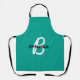 Delantal Nombre verde azulado | Verde inicial moderno de mo