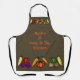 En la cocina hay un delantal marrón que se puede usar en la cocina. Está decorado con verduras de colores vivos y se puede personalizar con tu propio nombre y palabras. Viene en una variedad de tamaños, pequeño, mediano y grande, y hace un gran regalo personalizado para un cocinero.