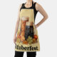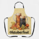 Tomas de cerveza clara y oscura con hojas de otoño, calabazas y texto de Oktoberfest...delantal