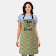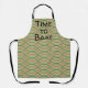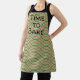 Este delantal tiene un diseño boho de olas verdes y naranjas en un campo de verde claro.
