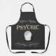 Este delantal personalizado presenta un tema psíquico místico sobre un fondo negro. En el centro se coloca una imagen de una bola de cristal, con dos banderas debajo. En el primer banner se imprime un servicio de lecturas de palmera y en el segundo Tarot Cards. Puede personalizar la plataforma para incluir su propio texto personalizado. En la parte superior se muestra el nombre medio Madame Mystique. La palabra Psíquico está impresa en un elegante tipo de letra dorada. Es perfecto para un regalo de Halloween.