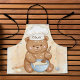 Este delantal personalizado para niños presenta a un pequeño osito chef revolviendo un tazón de masa con una cuchara de madera. Lleva un sombrero de chef blanco con el nombre de tu ser querido.