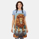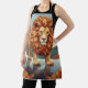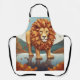 Este diseño creativo presenta un león macho hecho enteramente de hojas de otoño parado en un lago con una hermosa reflexión.