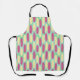Este delantal tiene un diseño geométrico de fondo de rectángulos de color verde-mar y azul claro con ovales amarillos y rosas encima.