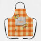 Granja rústica retro estilo casa de campo personalizada de cocina con rancia de barro a cuadros de barro de gingham de color naranja quemado, placa de madera natural y ramos botánicos de flores silvestres de primavera coloridas. +++++++++ Personalízalo con su monograma personal o familiar, nombre y texto! +++++++++ Puede ser un regalo de personalizado de bonito para una novia, un amigo o un chef para un boda, una ducha de novias, un aniversario, calentamiento de la casa, cumpleaños, Navidades.