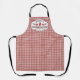 Este delantal estilo casa de campo presenta un diseño de estilo logo que dice "La panadería Gingerbread de la Sra. Claus" en un fondo de gingham rojo y blanco. Puede personalizar con un nombre.