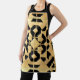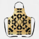 Diseño intrincado de baldosas cuadradas que muestra un patrón geométrico de formas doradas dispuestas simétricamente sobre una superficie negra, exudando sofisticación, elegancia y lujo a través de su estética moderna, limpia y minimalista.