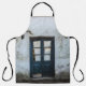 DELANTAL PANEL DE PUERTA DE MADERA AZUL EN EDIFICIO BLANCO