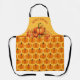 El delantal de Fun Fall Pumpkin Harvest tiene un patrón de calabazas en el fondo contra un fondo amarillo. La mitad superior tiene una exhibición de calabazas y hojas caídas. Se utiliza un tipo de letra moderno para personalizar el delantal con su nombre. También hay dos toallas de cocina y un juego de utensilios para horno y portamaletas que se coordina con el delantal.