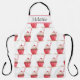 Un quequito rosado con cerezo sobre un delantal acuarela. Personalízalo con tu nombre. Regalo para panadero.