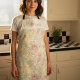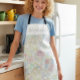 Cook with charm in this personalized cotton apron. Features a dense sketch watercolor floral design with pastel pink, blue, yellow flowers and vine tendrils on creamy white—ideal for cottagecore kitchen decor. Add their first name in elegant script, machine-washable, perfect gift.