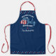 Prepárate para celebrar nuestro país con estilo cada vez que te enfrentas con este llamativo, gráfico, patriótico, delantal de nombre personalizado. Bandera americana audaz, rústica "4", tipografía blanca y escritura manuscrita azul, junto con bandas de estrellas diminutas rojas y blancas, superponen un fondo azul marino. Personaliza con tu nombre u otro saludo. ¡Seguro que le da mucha diversión a tu gran evento de verano! Simplemente teclee el nombre de su familia u otro mensaje y puede personalizar fácilmente este delantal personalizado. Por favor, envíame cualquier pregunta o petición.