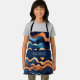 Delantal Patrón abstracto de acuarela azul de ola dorada