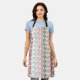 Este delantal tiene el diseño Boho de diferentes formas con líneas en ellos en varios colores.