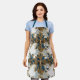 Patrón de la Santísima Cruz Medieval Católica, inmersa en un florido oligarca y acentos florales, perfecto para los amantes de las obras de arte detalladas. Este delantal, provisto de correas azules, no sólo es bonito, sino también práctico para el uso diario.