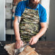 Un diseño genial para los amantes de la pesca, este divertido diseño masculino cuenta con una escuela de varios peces nadando en un gran grupo. Los colores son verde, beige, marrón, óxido y gris sobre un fondo negro.