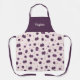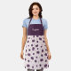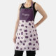 Un delantal con un patrón de higuera sobre un fondo rosa claro y un nombre de personalizable encima sobre un fondo morado. Un regalo encantador para un amigo que ama las frutas. ¡También se puede usar en una tienda cuando trabajas!