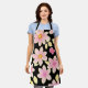 Delantal Patrón de flor rosa y negra